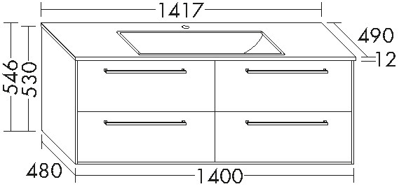 Burgbad Osera Waschtisch-Unterschrank-Set 141,7 x 49 x 54,2 cm, Anthrazit Hochglanz, Schublade/Auszug, Keramik-Waschtisch weiß