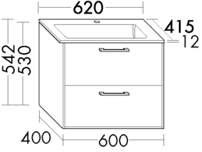 Burgbad Osera Waschtisch-Unterschrank-Set 62x41,5x54,2cm, 1 Schublade, 1 Auszug, mit Waschtisch, weiß matt T2 W943511