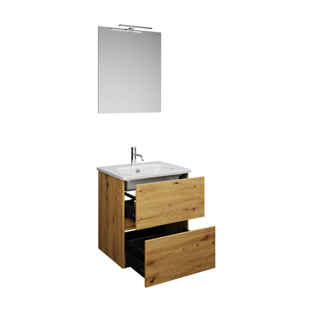 Burgbad Waschtisch-Kombination Rocio mit Spiegel, 60,5 x 200 x 46,5 cm, Eiche Dekor Urban