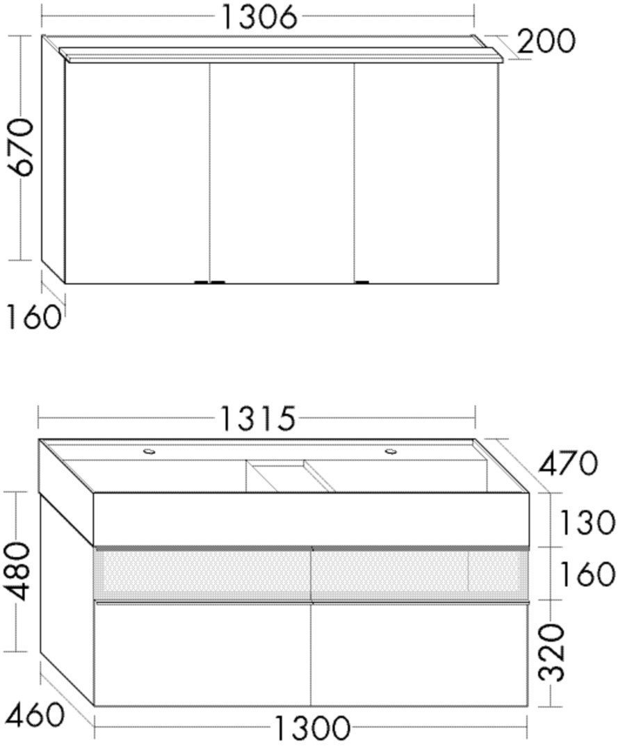mit Mineralguss-Waschtisch und Waschtischunterschrank, bestehend aus SPIY130 + SFKL132