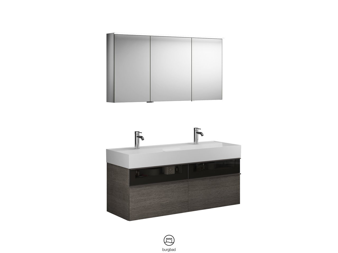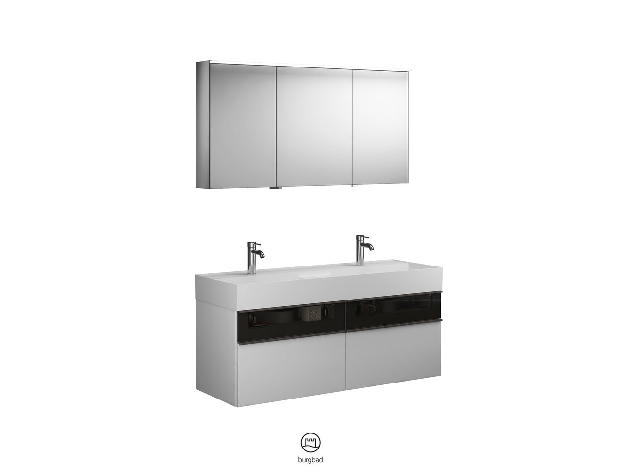 Burgbad Waschtisch-Kombination Yumo 131,5x48x47cm, mit Spiegelschrank, Acryl
