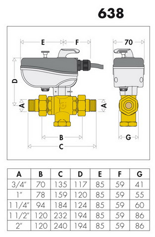 Caleffi Dreiwege-Motor-Kugelventil 638 3/4", 230 V, Kv 9,9 m³/h, mit L-Bohrung W799217