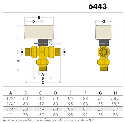 Caleffi Dreiwege-Motor-Umlenkventil 6443 1/2", 230 V, Kv 3,9 m³/h, Schaltzeit 10 s W799261