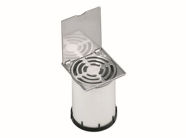 passend zu den Ablaufgehäusen 40, 42 und 46, sowie zu den Aufstockelementen 85, Aufsatzverlängerung ABS, verlängerbar mit HT-Rohr DN 100, Rahmen/Rost aus Edelstahl 1.4301, Rost Ø 115 mm, Abdeckplatte Edelstahl 1.4301, massiv, Belastungsklasse K 3 (300 kg)