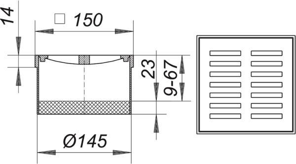 Dallmer Aufsatz K 15 Serie 15 150 x 150 mm, Rost Polyamid