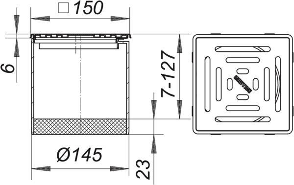 Dallmer Aufsatz VEC 15 Serie 15 VEC 15,Rost Edelstahl, 150x150mm, seitenverstellbar W554891