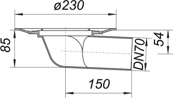 Dallmer Balkonablaufgehäuse 83 DN 70, Ablaufstutzen seitlich, 3° abgewinkelt