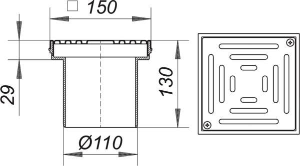 Dallmer Boden-/Ferneinlauf KEN 11 150 x 150 mm, Edelstahl, Rost verschraubt