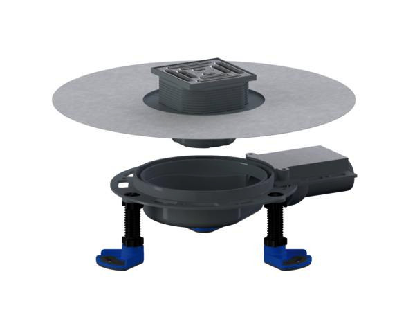 vorkonfektioniertes Set, mit Positionierhilfe, Bodenablauf mit Aufsatz DallDrain Pure mit Edelstahlrost im Kunststoffrahmen, Ablaufstutzen DN 40 seitlich, mit Kugelgelenk, verstellbar von 0-15°, integrierte Estrichverankerung, flexible und einklickbare Dichtmanschette zum sicheren Anschluss an Verbundabdichtungen gemäß DIN 18534, komplett herausnehmbarer Geruchs- und Reinigungsverschluss, mechanisch wirkend (abweichend von DIN EN 1253), Bauschutzdeckel, drei schallentkoppelte Montagefüße zur Fixierung und Höheneinstellung 55-250 mm, Aufsatzverlängerung kürzbar für Bodenbeläge 10-36 mm (mit Kleber), Estrichverstärkungselement zum Schutz des Ablaufstutzens, Ablaufgehäuse und Ablaufstutzen Polypropylen, hochschlagfest, Rost Edelstahl 1.4301, Belastungsklasse K 3 (300 kg), Aufsatzverlängerung und Rahmen aus ABS, DallDrain Pure Plan 100 x 100 mm bestehend aus Art.-Nr. 517258, 517227 und 517340, DallDrain Pure Plan 120 x 120 mm bestehend aus Art.-Nr. 517289, 517227 und 517340