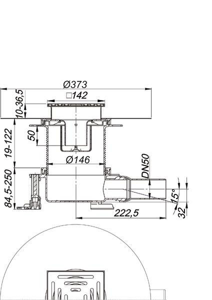 Dallmer Bodenablauf Set DallDrain Pure Vario 150 x 150 mm, seitenverstellbar +/- 5 mm, DN 50