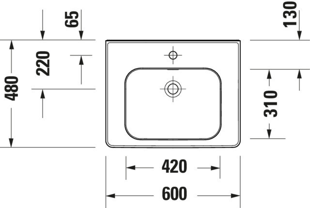 Duravit Möbel-Waschtisch Soleil by Starck 60 x 48 cm, weiß, mit Hahnloch, Überlauf, Hahnlochbank W32223