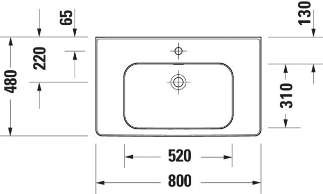 Duravit Möbel-Waschtisch Soleil by Starck 80 x 48 cm, weiß, mit Hahnloch, Überlauf, Hahnlochbank W32225