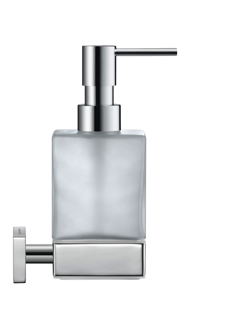 Duravit Seifenspender Karree 7 x 12,4 cm, Wandmontage, Glas weiß matt, Halter chrom
