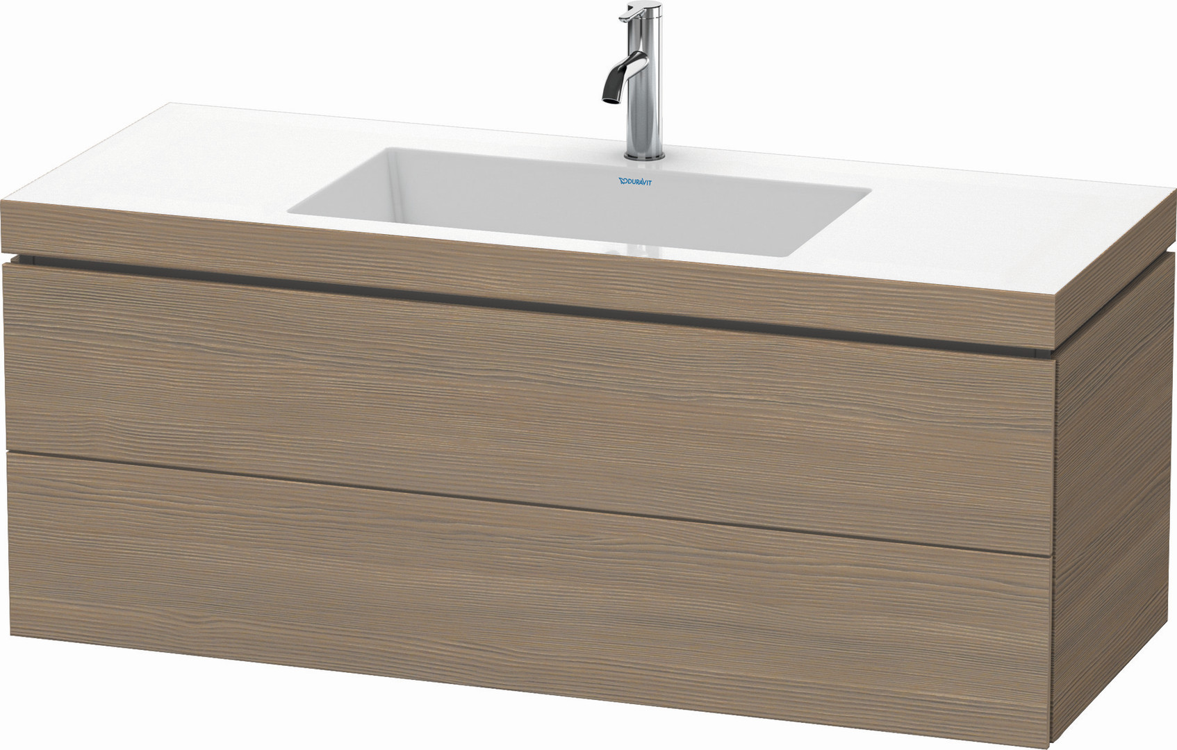 Duravit Waschtisch-Unterschrank c-bonded L-Cube 120 x 48 cm, 1 Hahnloch, Eiche terra, 2 Schubkästen, wandhängend
