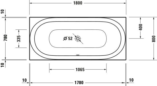zentraler Ablauf, Rückenschräge beidseitig, Material Sanitäracryl, Nutzinhalt 226 l, mit Fußgestell, Ab- und Überlaufgarnitur