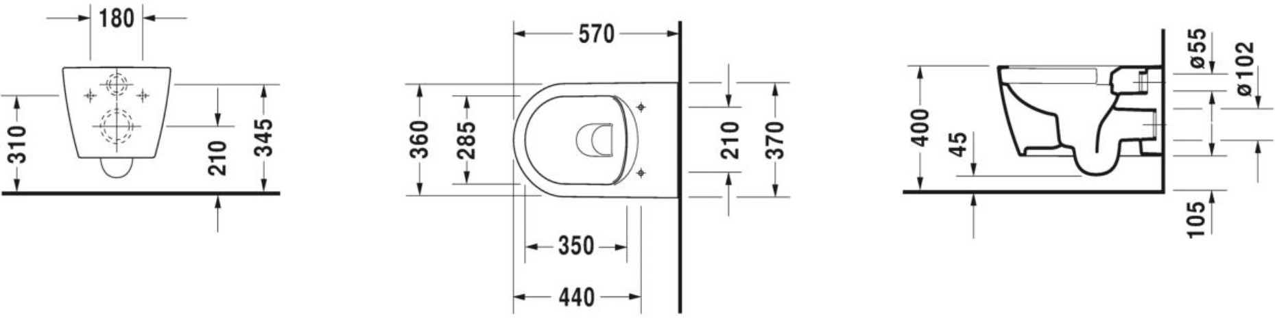 Duravit X-Like Wand-Tiefspüler 570 mm, rimless, mit Durafix-Befestigung, weiß