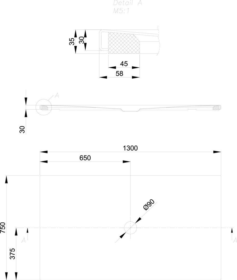 Duschfläche BetteFloor 5797 130x75cm, Mini-Wannenträger, flanell