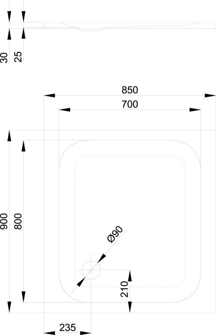 Duschwanne BetteUltra 1559 90x85x2,5cm, weiß W85150