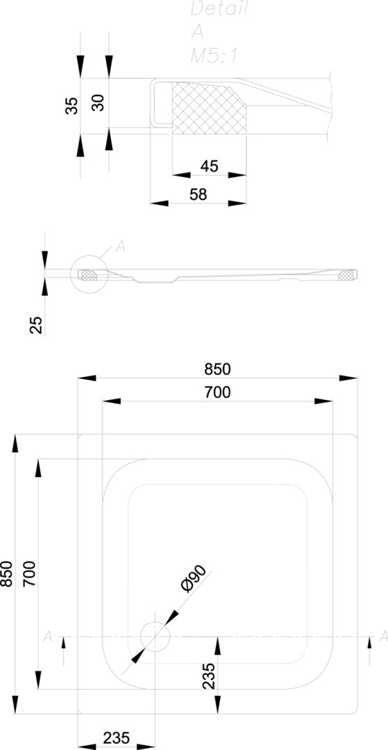 Duschwanne BetteUltra 1589 85x85x2,5cm, Mini-Wannenträger, silver