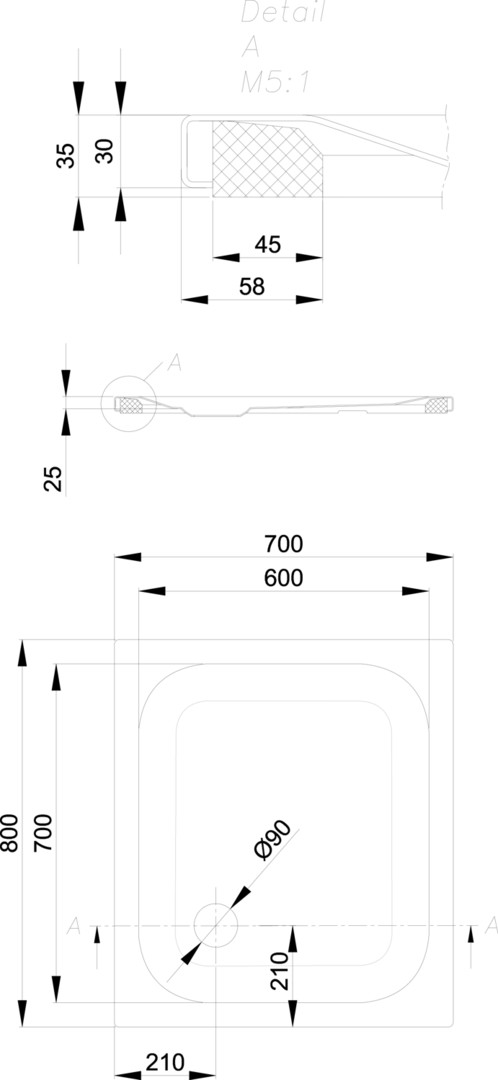 Duschwanne BetteUltra 5679 80x70x2,5cm, Mini-Wannenträger, anthracite