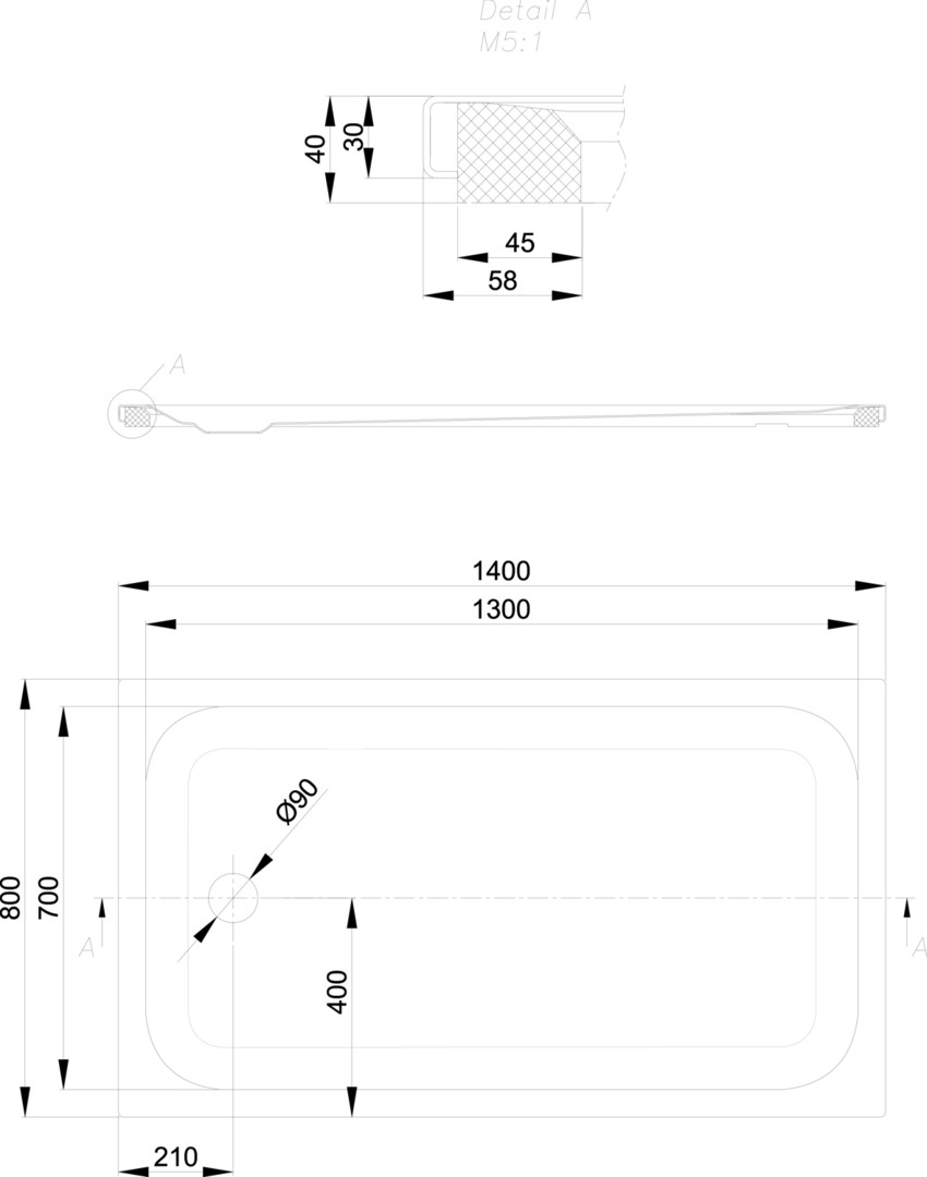 Duschwanne BetteUltra 5804 140x80x3,5cm, Mini-Wannenträger, weiß