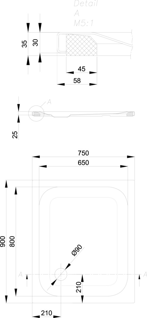 Duschwanne BetteUltra 5840 90x75x2,5cm, weiß W115454