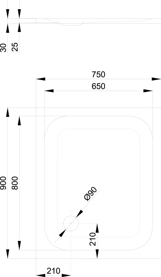 Duschwanne BetteUltra 5840 90x75x2,5cm, weiß W115454
