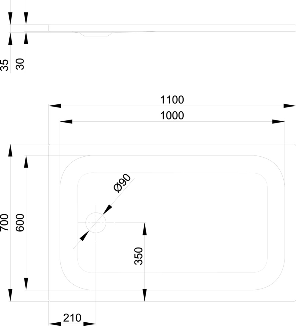 Duschwanne BetteUltra 8725 110x70x3,5cm, weiß W138395