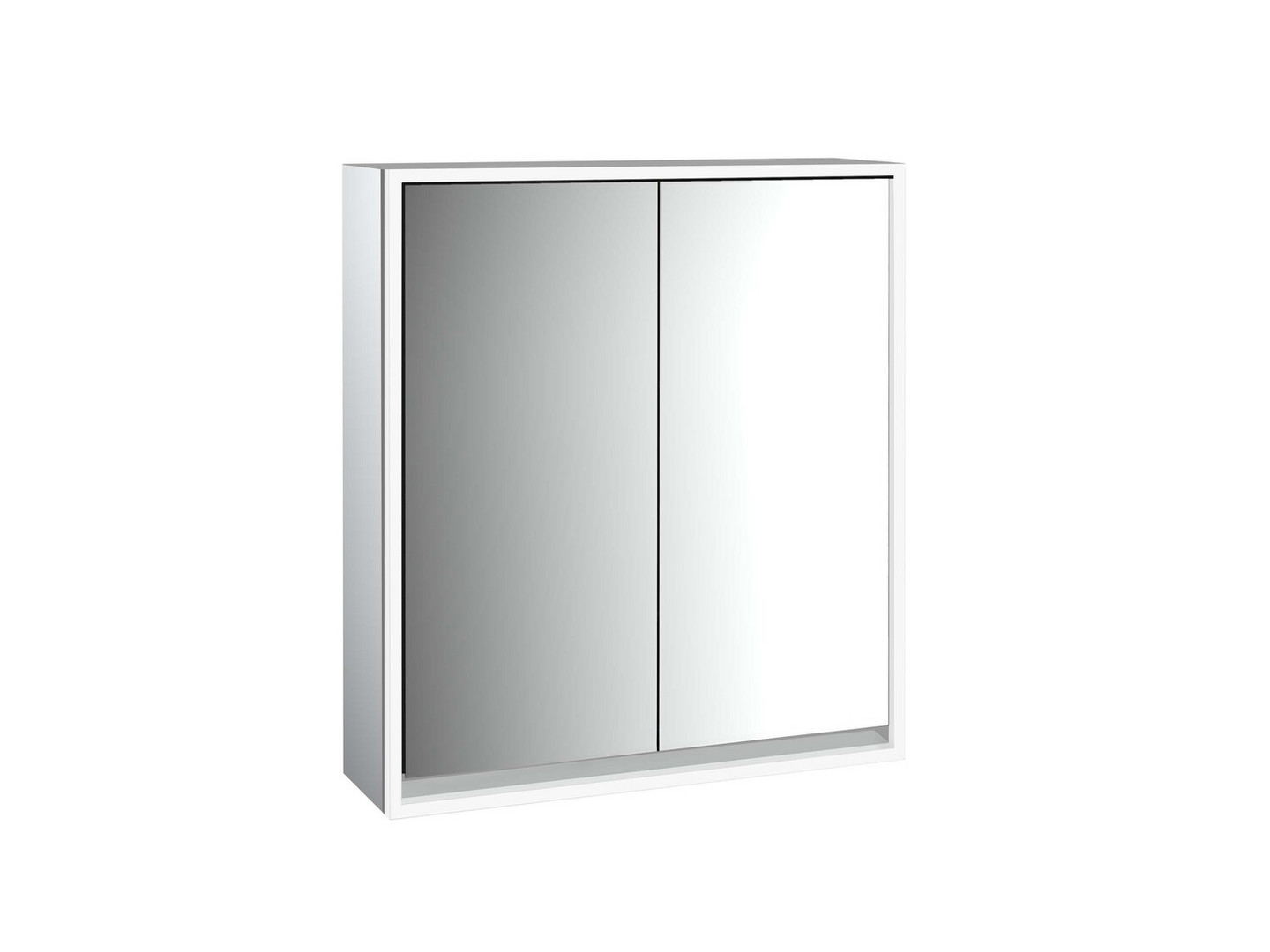 EMCO Aufputz-Lichtspiegelschrank Loft 600x733mm, LED umlaufend, 2-türig, aluminium/weiss W451864