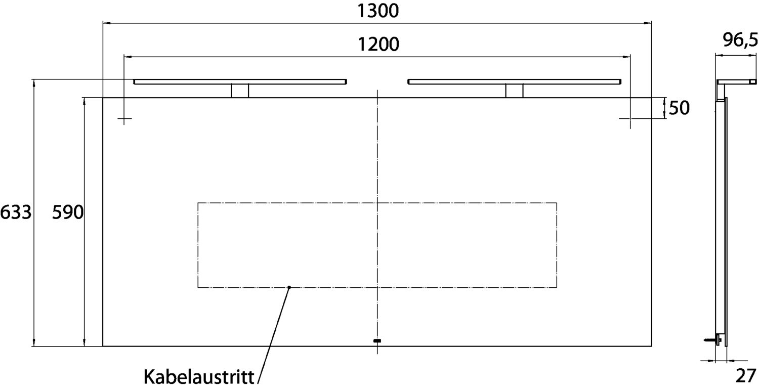 EMCO LED-Lichtspiegel Mee 1300 x 590 mm, zwei LED-Aufsatzleuchten, mit Sensorschalter