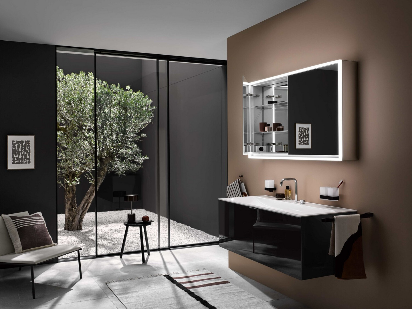 EMCO Unterputz-Lichtspiegelschrank Loft 600x733mm, LED umlaufend, 2-türig, schwarz/spiegel W451917