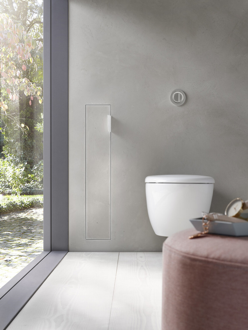 Fliese und Kleber max. 12 mm, mit Fächern für Reserverolle oder Feuchtpapierbox, WC-Papier und integrierter Toilettenbürstengarnitur, kein Einbaurahmen erforderlich