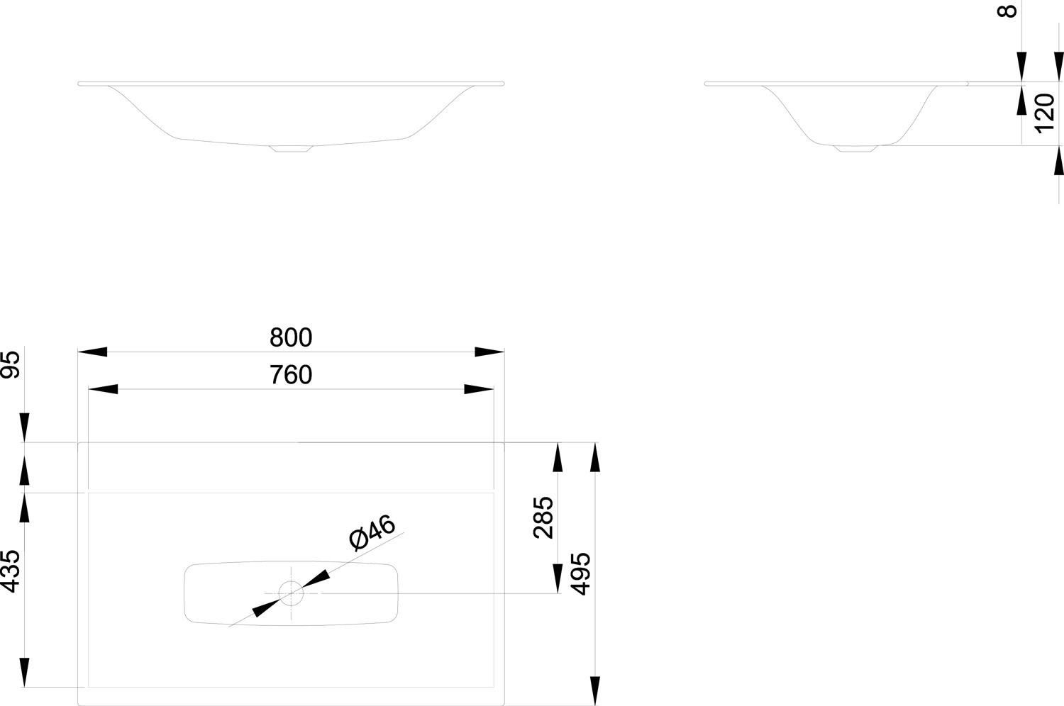 Einbau-Waschtisch BetteLux A161 80x49,5cm, weiß W41076