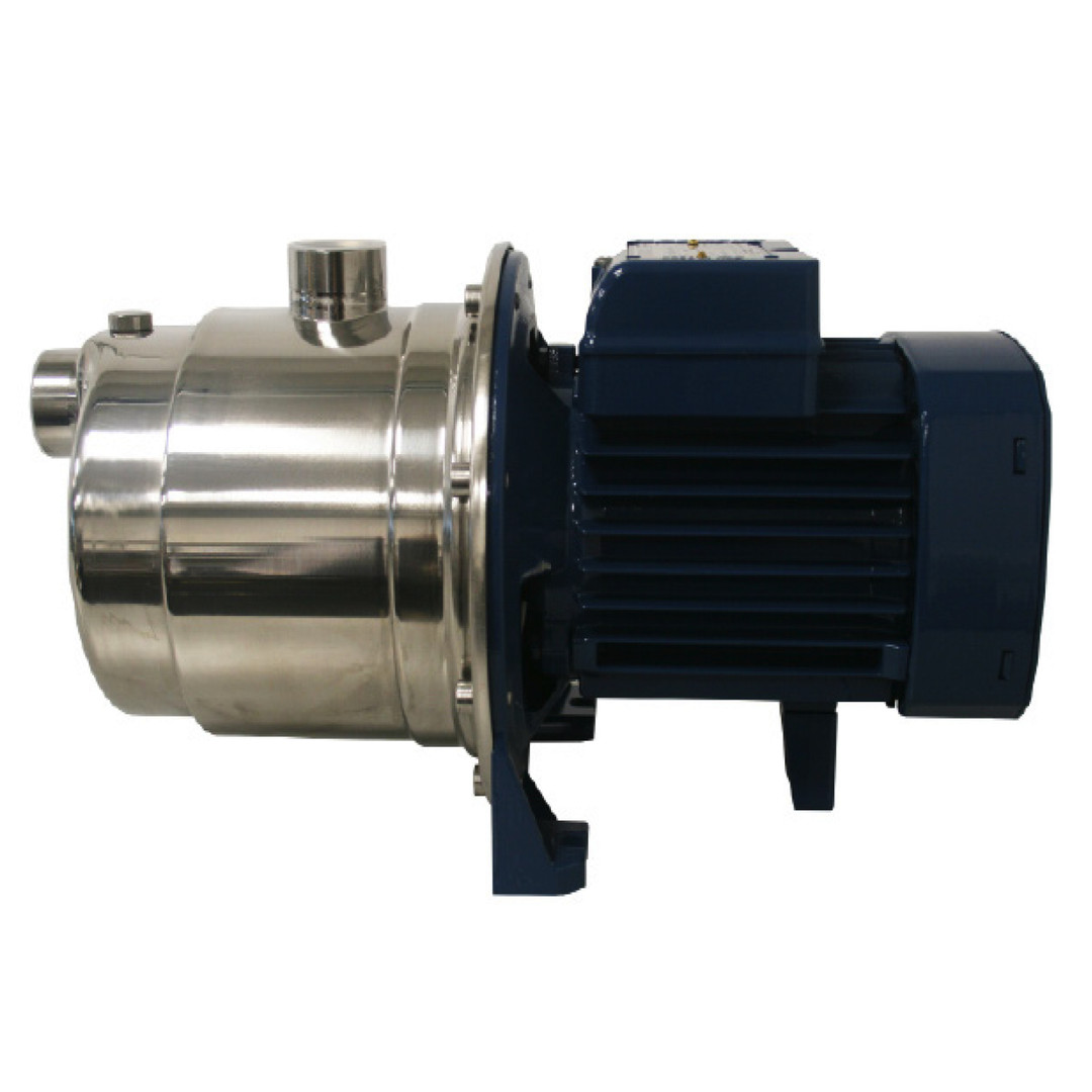 mehrstufig, selbstansaugend, aus Edelstahl, Laufräder aus Noryl und Gleitringdichtung aus Keramik und Graphit, Ansaugleistung bis 8 m, ausgestattet mit 0,3 m Kabel und Schutzkontaktstecker, fördert sauberes und klares Wasser sowie nicht zähe Flüssigkeiten ohne chemische und aggressive Bestandteile, Baugruppe oder Ersatzteil für Regenwassersysteme, Druckerhöhungen, Hauswasserwerke, Hauswasserautomaten und Trennstationen, bestehend aus Pumpe mit Motorschaltkasten, 0,3 m Anschlussleitung mit Schutzkontaktstecker und 1" Saug- und Druckeingang mit IG, Pumpenfüße mit Befestigungsöse