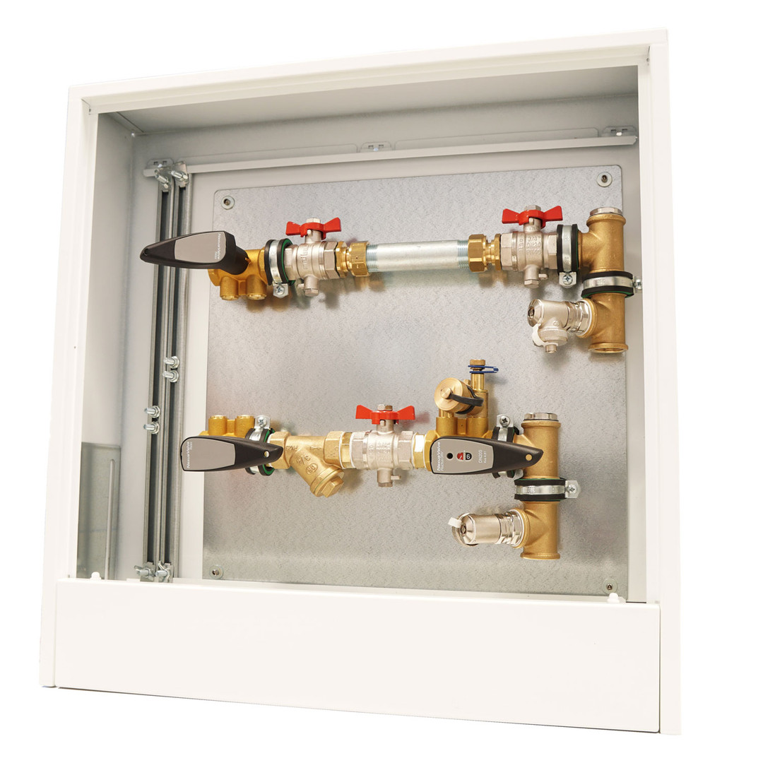 FL Mess-Station Aufputz, Anschl. rechts, m. Strangregulierv, Schmutzf., 110mm PS