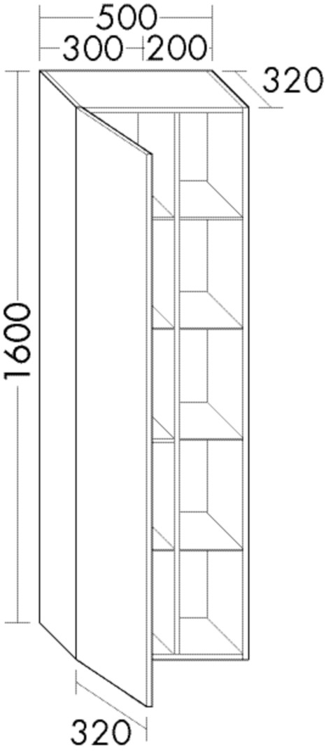FORMAT Design Hochschrank HSKS050 L 500x1600x320mm, links, 1 Tür, weiß Matt W386093