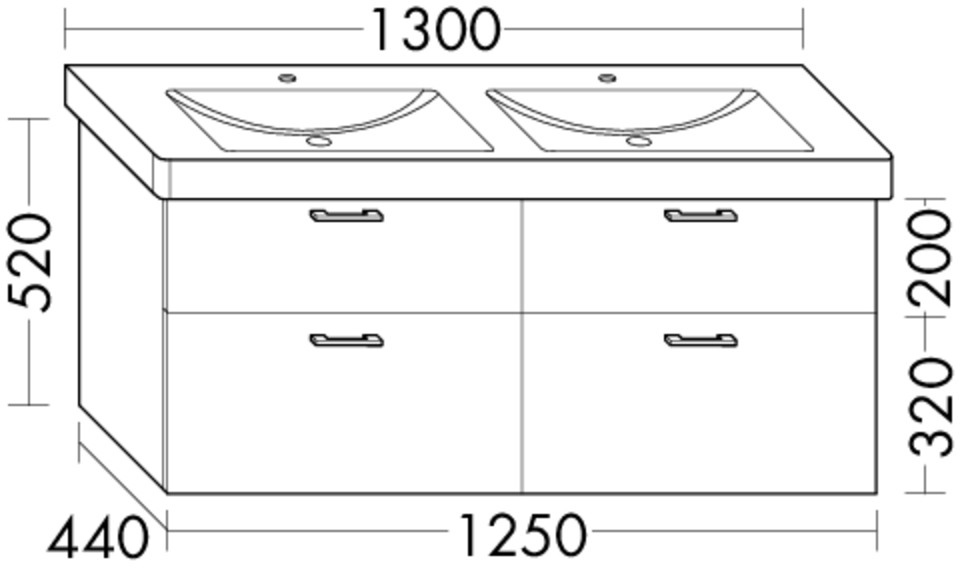 FORMAT Design Waschtisch-Unterschrank WUUH 1250x520x440mm, 2 Schubladen/2 Auszüge, weiß Hochglanz W385049
