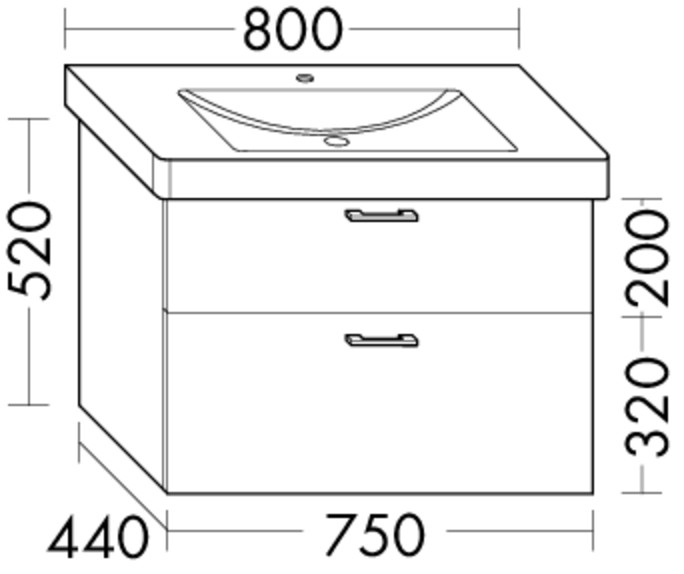 Waschtisch zu Villeroy & Boch Subway 2.0 7113.FA, Schublade oben, mit Siphonausschnitt und Inneneinteilung, Auszug unten