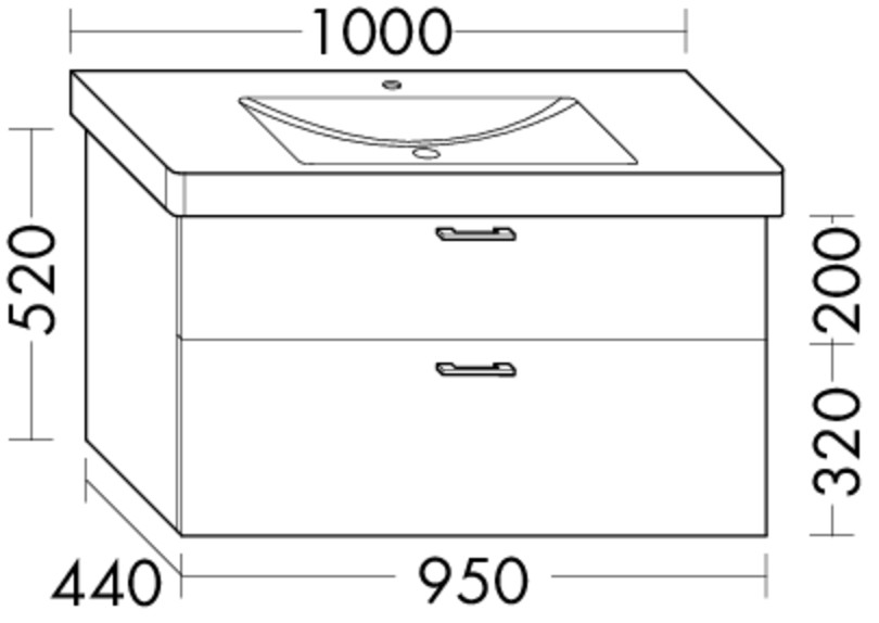 Waschtisch zu Villeroy & Boch Subway 2.0 7113.FA, Schublade oben, mit Siphonausschnitt und Inneneinteilung, Auszug unten