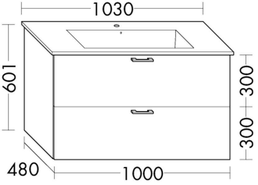 FORMAT Design Waschtisch-Unterschrank WVFH100 1000x480x601mm, 1 Schublade/1 Auszug, weiß Hochglanz W387456