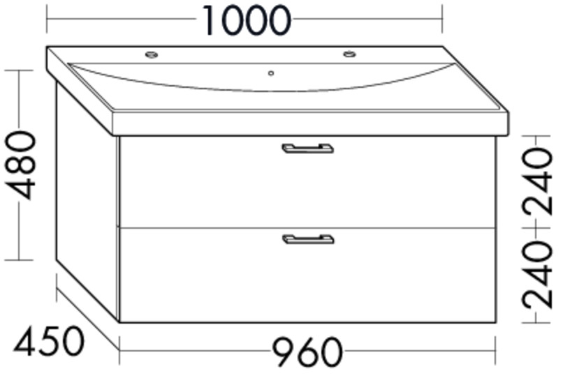 FORMAT Design Waschtisch-Unterschrank WVPY096 960x480x450mm, 1 Schublade/1 Auszug, weiß matt W387724