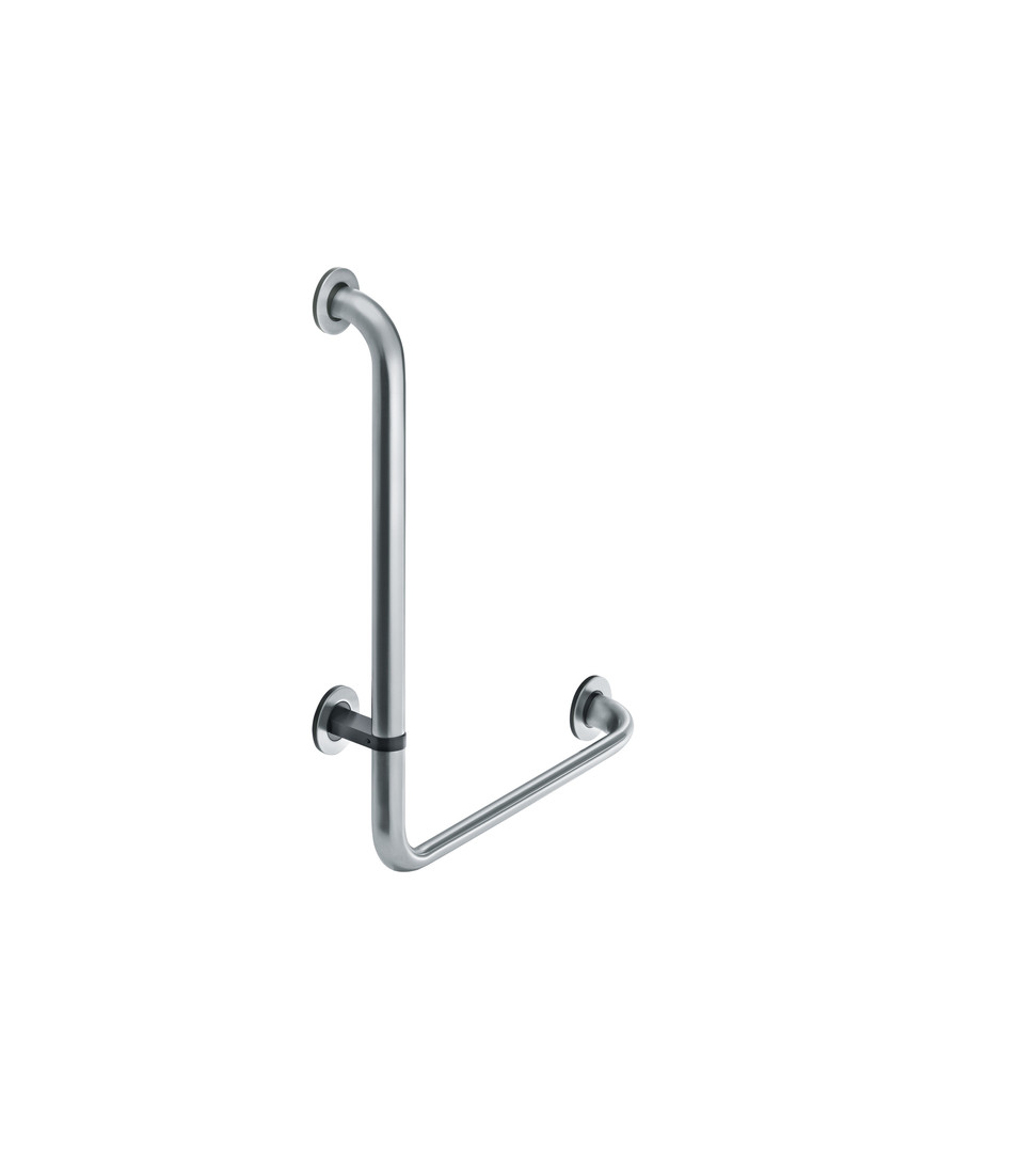für Dusch- und WC-Bereich, Handgreifform elliptisch durch Ovalrohr 36,5 x 22 mm mit 45°-Schrägstellung, Befestigung verdeckt durch Abdeckblenden aus Edelstahl, Wandhalterungen aus Zinkdruckguss, schwarzgrau (RAL 7021), Ø 70 mm, mit Befestigungsmaterial