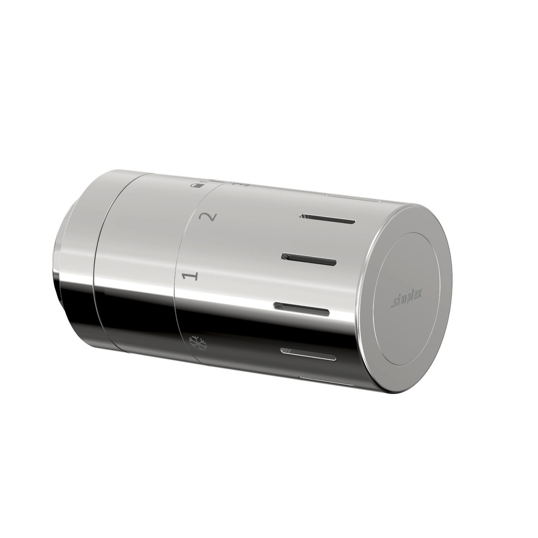 Sollwertbereich 7-28 °C, Stellung 3 ca. 20 °C, Frostschutzsicherung ca. 7 °C, nicht steigender Thermostatkopf mit eingebautem Flüssigkeitsfühler, verdeckte Gewindemutter, durchgehend homogen-glatte Oberfläche, Temperatur kann mit Einhandbedienung am Thermostat eingestellt werden