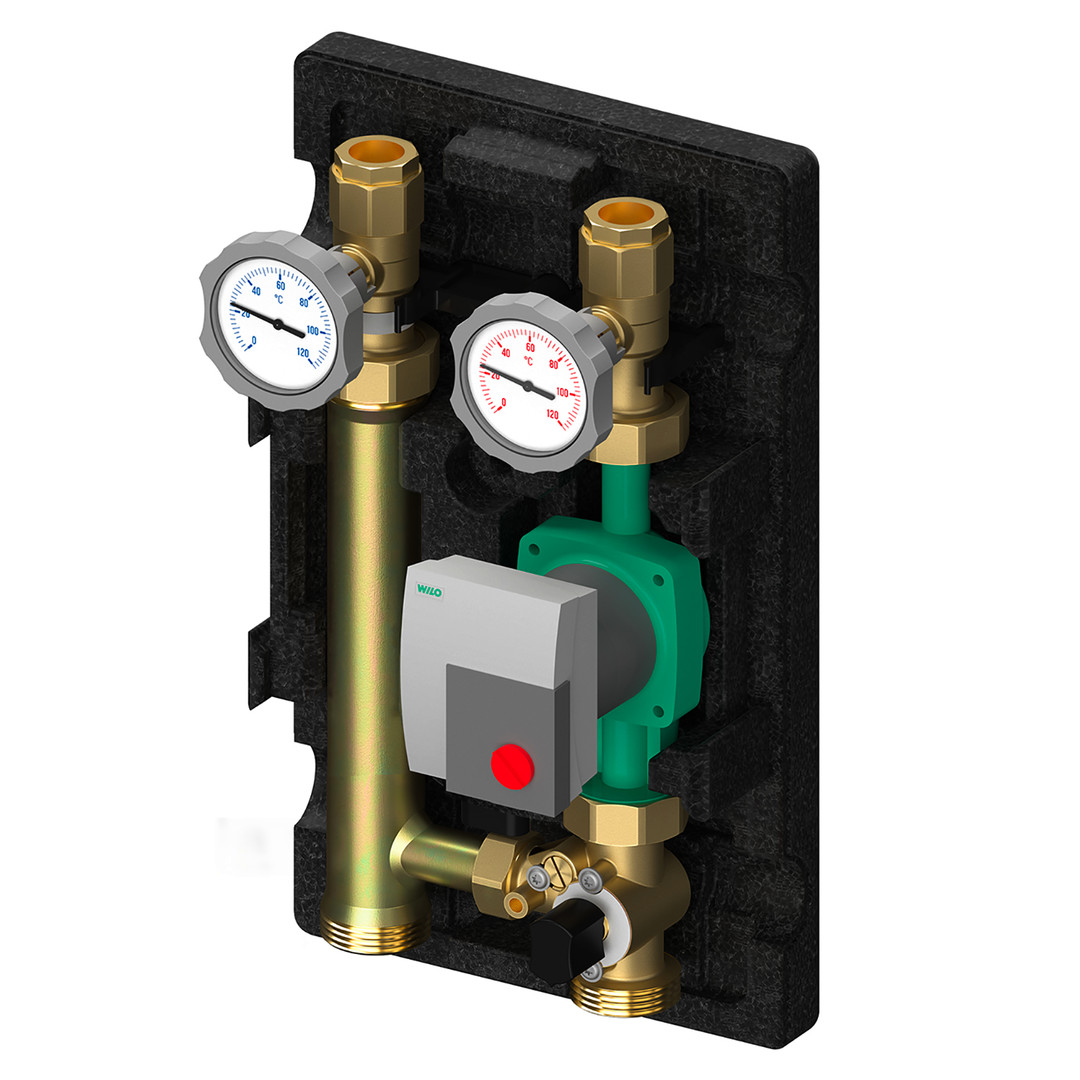 Flamco Pumpengruppe 3 Wege-T-Mischer 8 MC rechts, 1" mit Wilo-Pumpe Yonos PICO 25/1-6