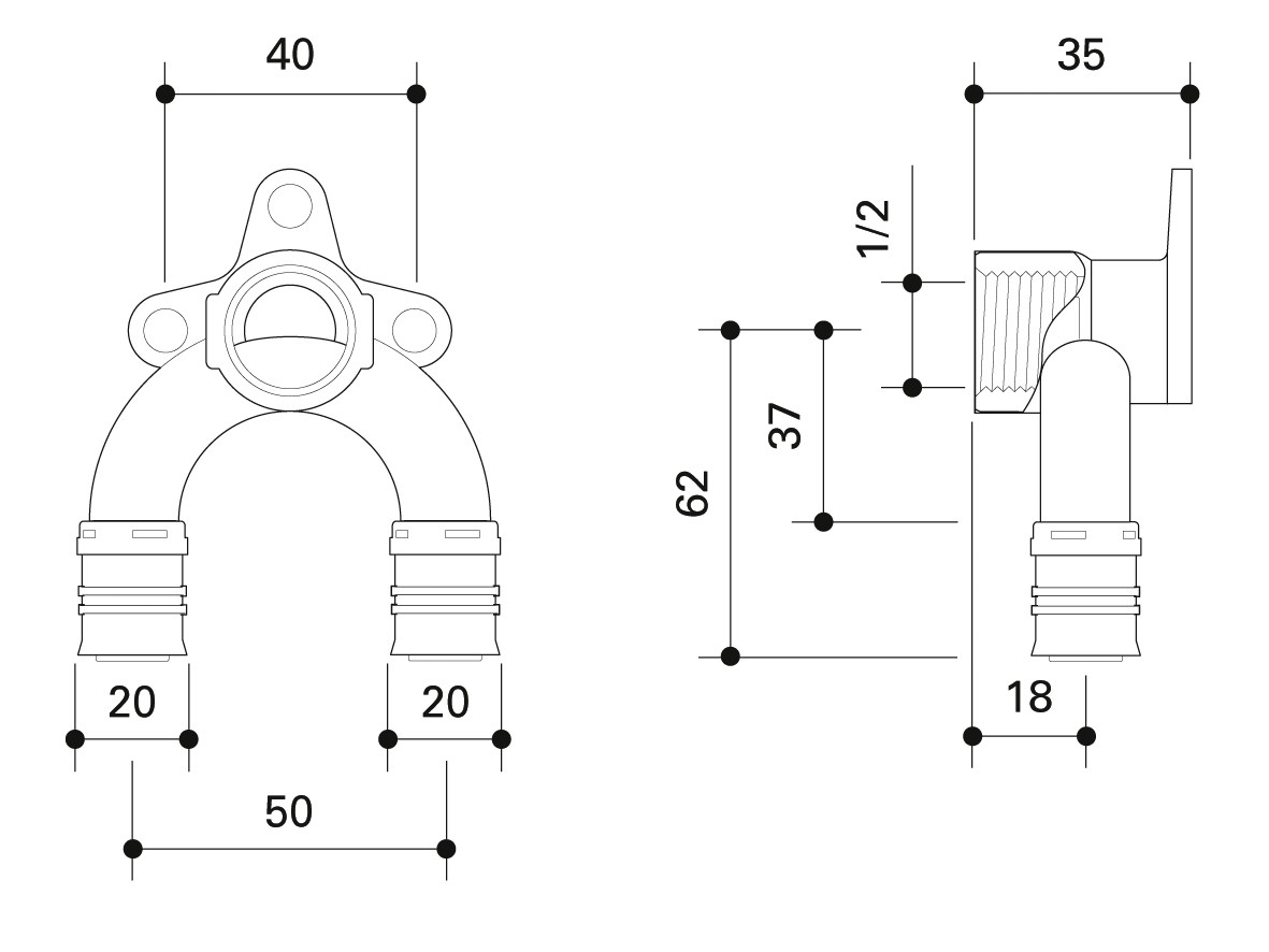 Fränkische Doppel-Wandwinkel alpex 35mm, Innengewinde, Siliziumbronze, 20 mm x Rp 1/2 x 20 mm