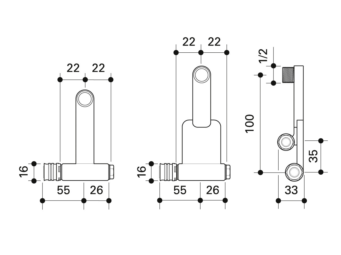 Fränkische Heizkörper-Anschluss-Set alpex 16 mm x G 1/2, Kappe rechts, Messing
