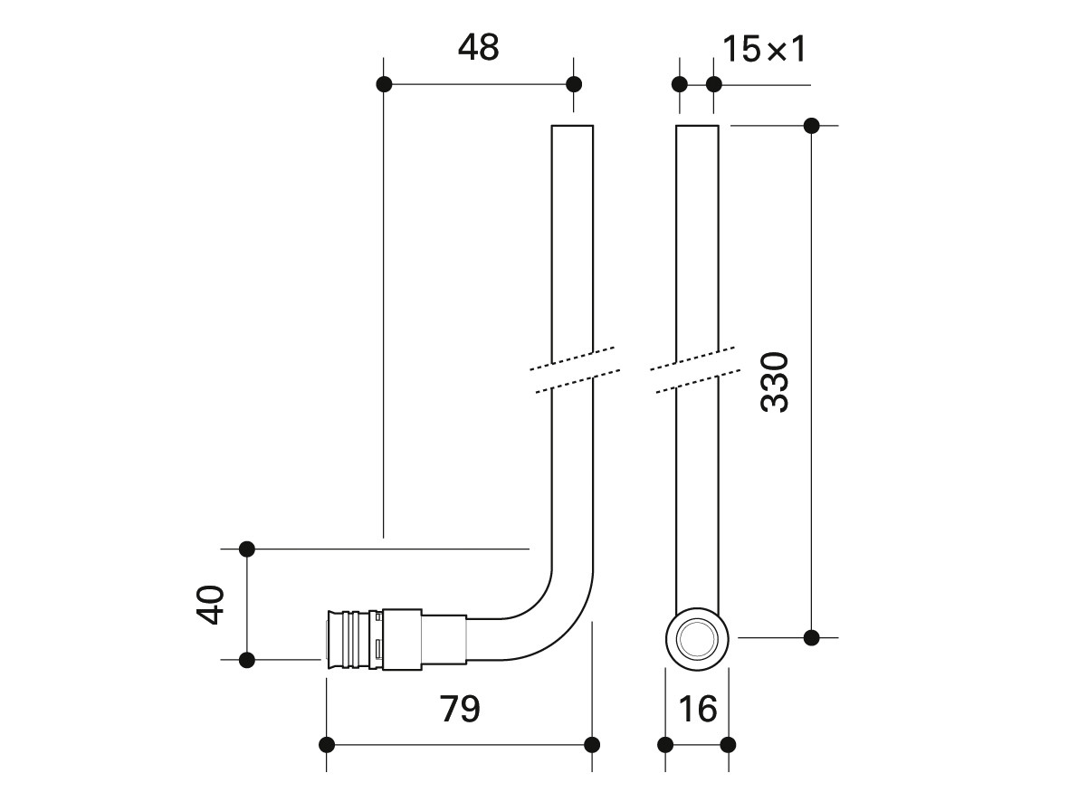 Fränkische Heizkörper-Anschlussbogen alpex 16 - 15 mm SST, 330mm, Edelstahlrohr 15x1mm