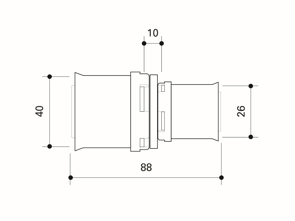 Fränkische Kupplung alpex L 40 x 26 mm, PPSU, reduziert