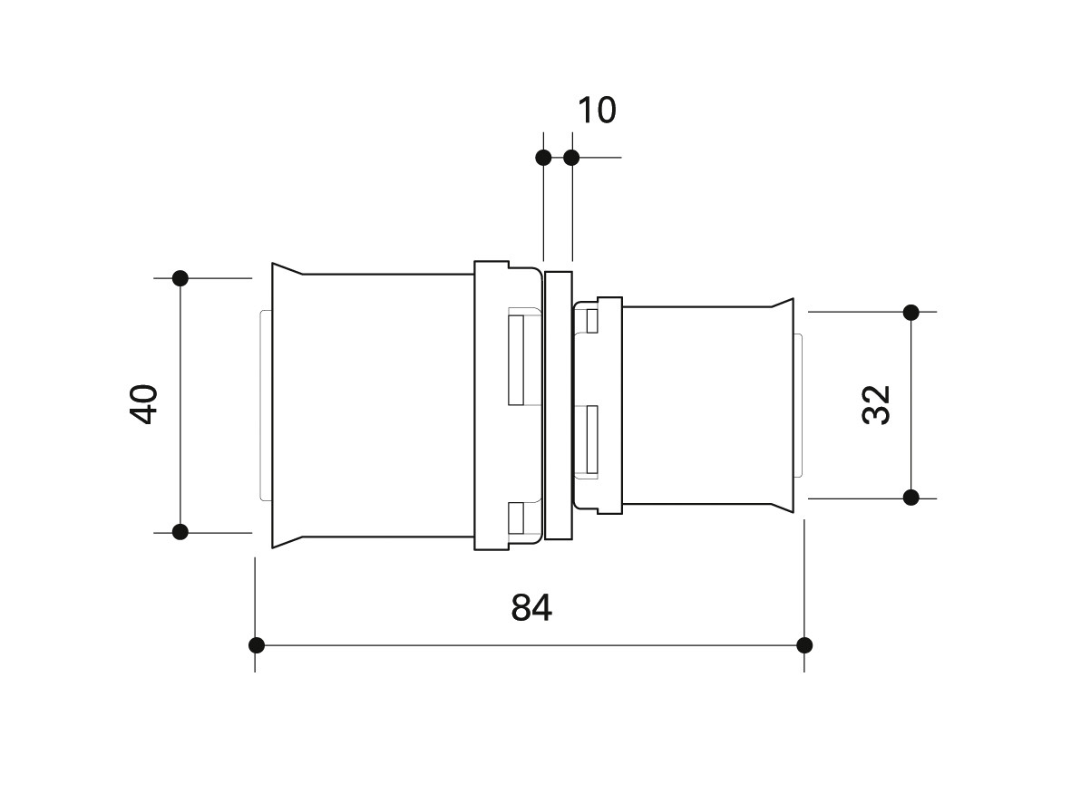 Fränkische Kupplung alpex L 40 x 32 mm, PPSU, reduziert