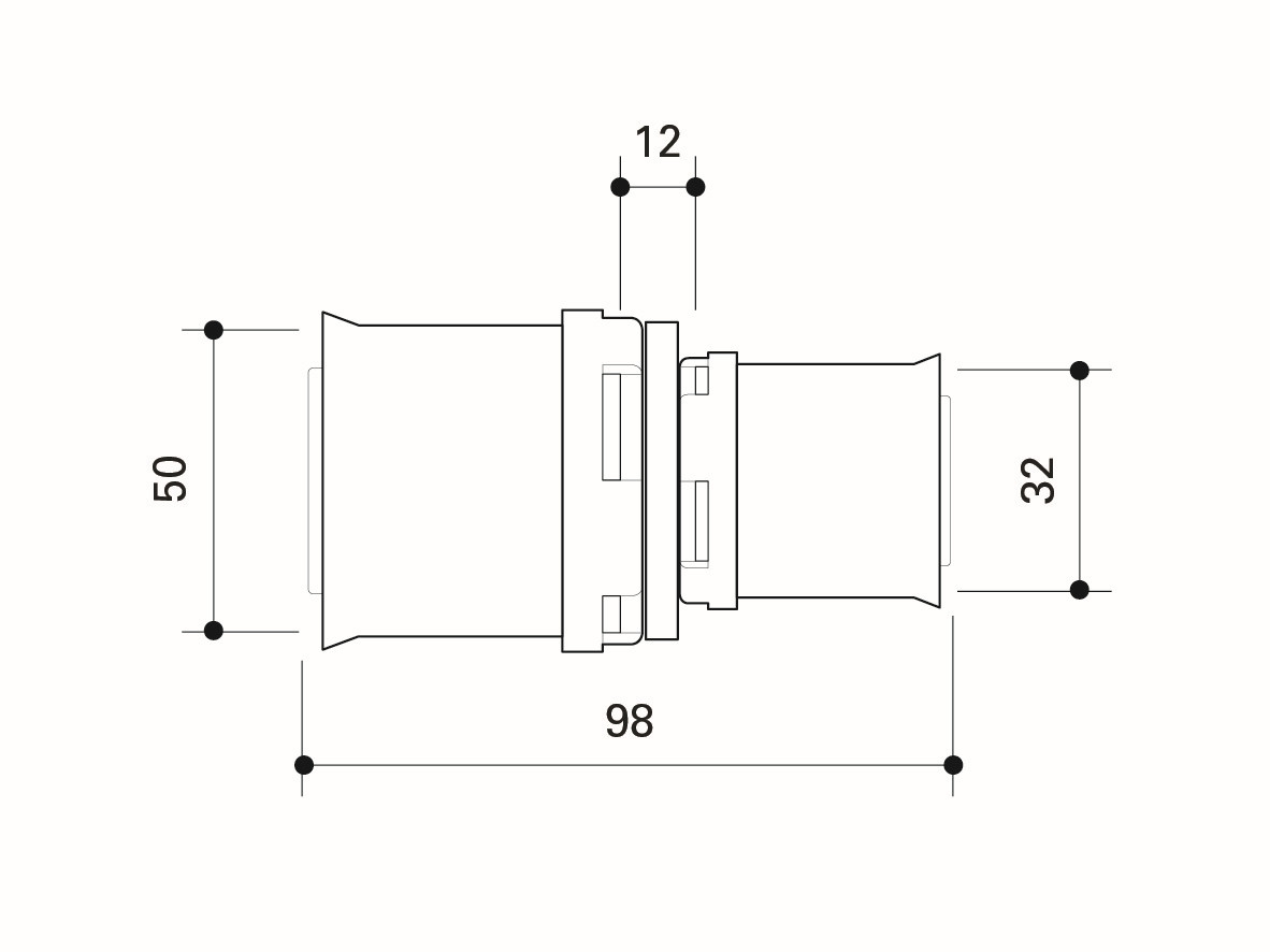 Fränkische Kupplung alpex L 50 x 32 mm, PPSU, reduziert